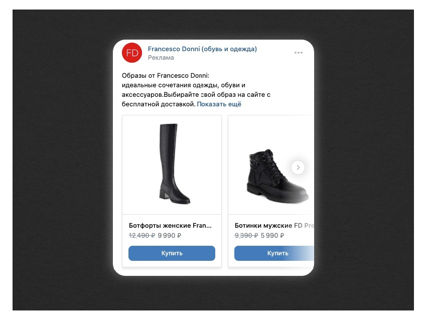 Instagram* ограничил возможность продвижения товаров из России, поэтому вместе с компанией Франческо Донни мы решили продавать женскую одежду во ВКонтакте.