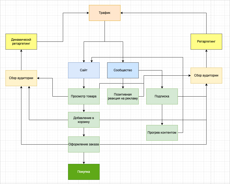 Затем в рекламе покажем теплой аудитории товар, который её заинтересовал или может заинтересовать. Клиент снова перейдёт на сайт и совершит покупку.