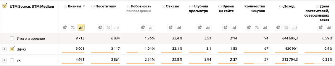 Utm-метки. Чтобы отслеживать работу рекламы мы разметили в сообществе все ссылки на сайт utm-метками ВКонтакте. Благодаря меткам мы видели, когда клиент перешел с ВКонтакте на сайт и понимали, что рекламу для второго касания нужно разместить именно во ВКонтакте.