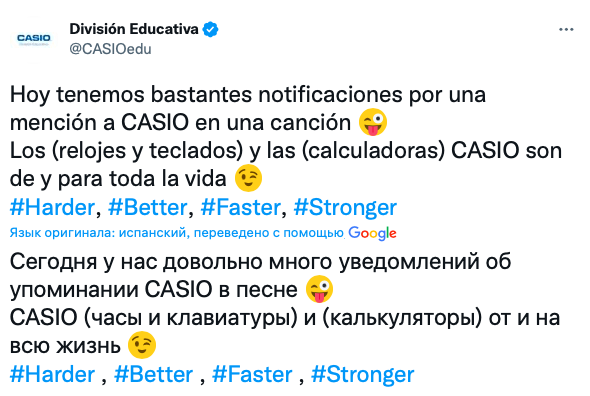 Японский производитель недорогих часов и калькуляторов Casio сначала довольно безобидно отреагировал на песню в одном из своих официальных аккаунтов: «Сегодня у нас довольно много уведомлений об упоминании Casio в песне. Casio (часы, клавиатуры и калькуляторы) — на всю жизнь».
