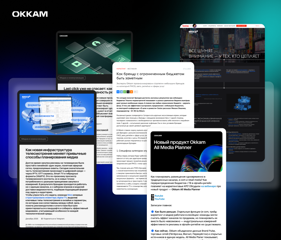 Аналитики Okkam разработали модель, которая анализирует данные о поведении потребителей в офлайн-магазинах. На ее основе создали инструмент All Media Planer. Он позволяет рассчитывать охват рекламы одновременно в трех средах: в офлайн-ритейле, в e-com и в классических медиа.