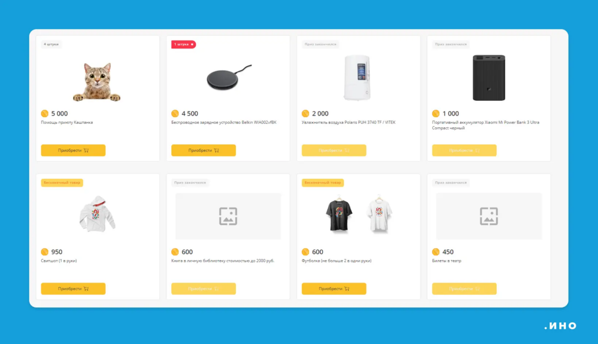 Компания «Иностудио» предлагает обменять заработанные монетки на мерч, книги, технику или билеты в театр
