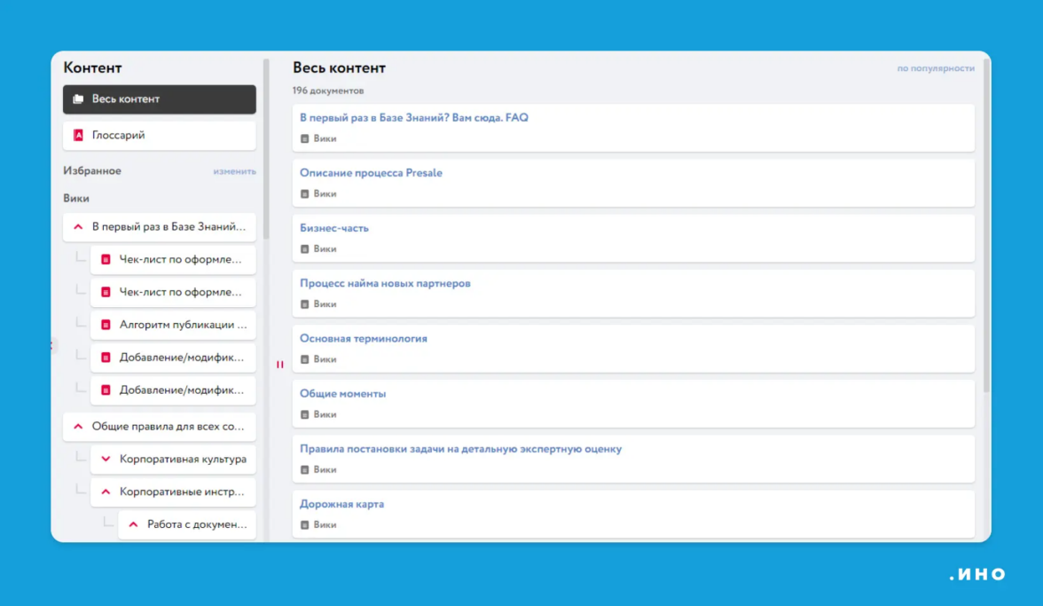 Организованная база знаний помогает новым сотрудникам погрузиться в процессы, а команде — поддерживать корпоративный стандарт