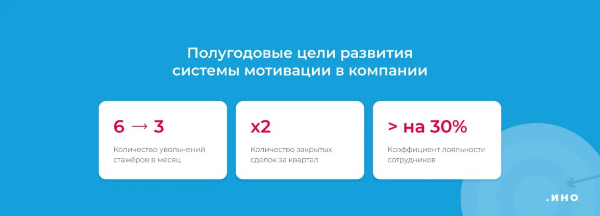 Оценить результат в установленный срок.По тому, как изменились заданные KPI спустя несколько месяцев, понятно, работает ли выстроенная система мотивации. Если показатели улучшились — отлично, можно запросить обратную связь у коллектива и продолжить в том же направлении. Если нет — стоит провести повторное интервью и пересмотреть систему.