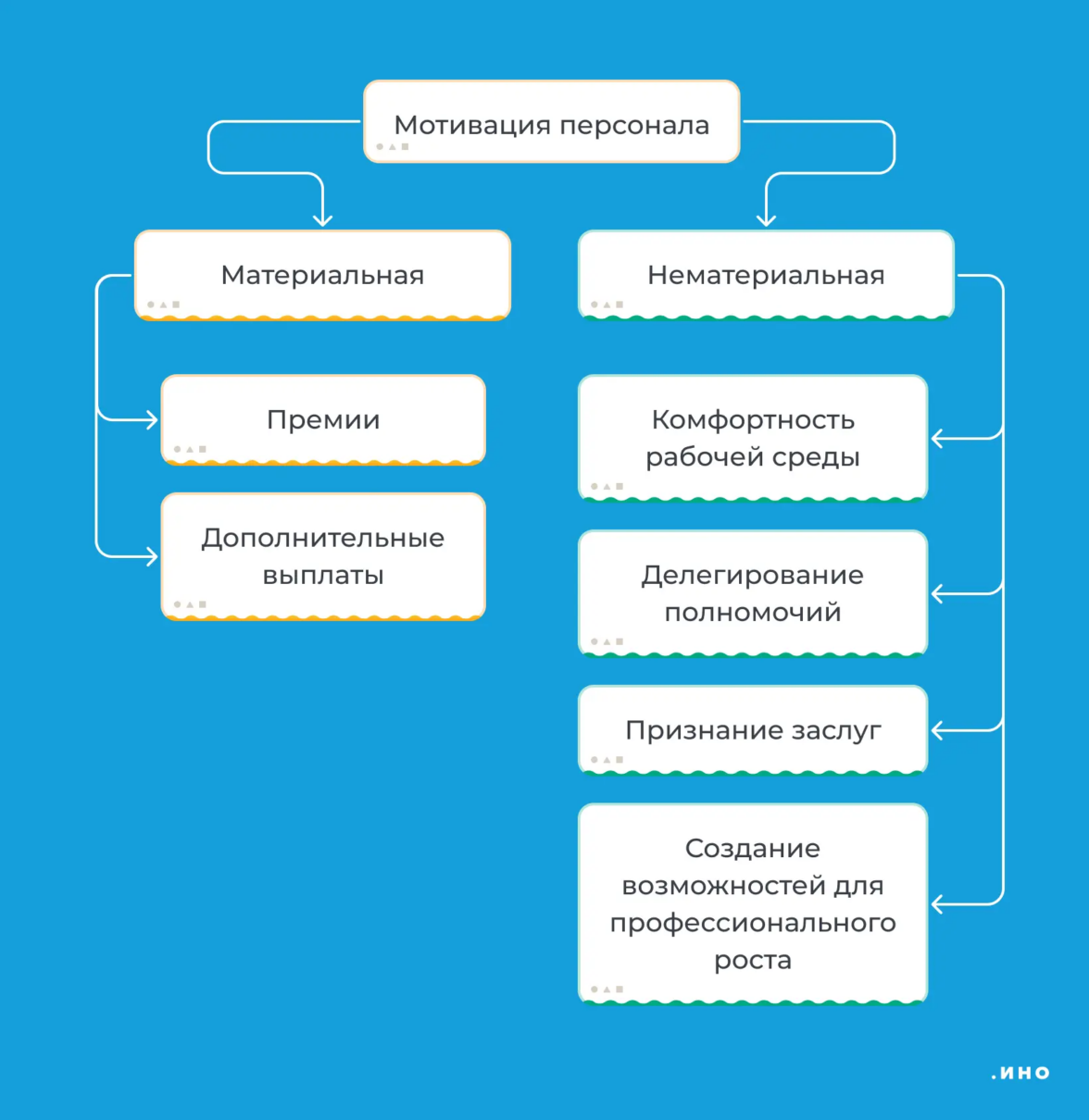 Виды мотивации. В нематериальной мотивации — комфортная рабочая среда, выстроенные бизнес-процессы, возможности для профессионального роста, удобная база знаний, признание заслуг