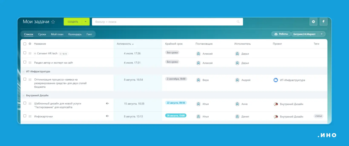 В трекере сотрудник отслеживает статус своих и командных задач, чтобы понимать, как развивается проект