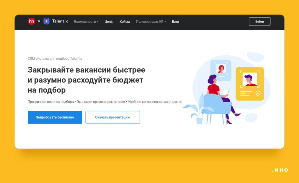 Talantix — HRM, которая на данный момент интегрирована с сервисом HH.ru. Помогает автоматизировать процесс подбора персонала, общаться с кандидатами и собирать аналитику по вакансиям. Рекрутеры могут создавать заявки на подбор, настраивать автоматическую отправку писем, просматривать резюме и оценивать кандидатов. И всё это в едином кабинете.
