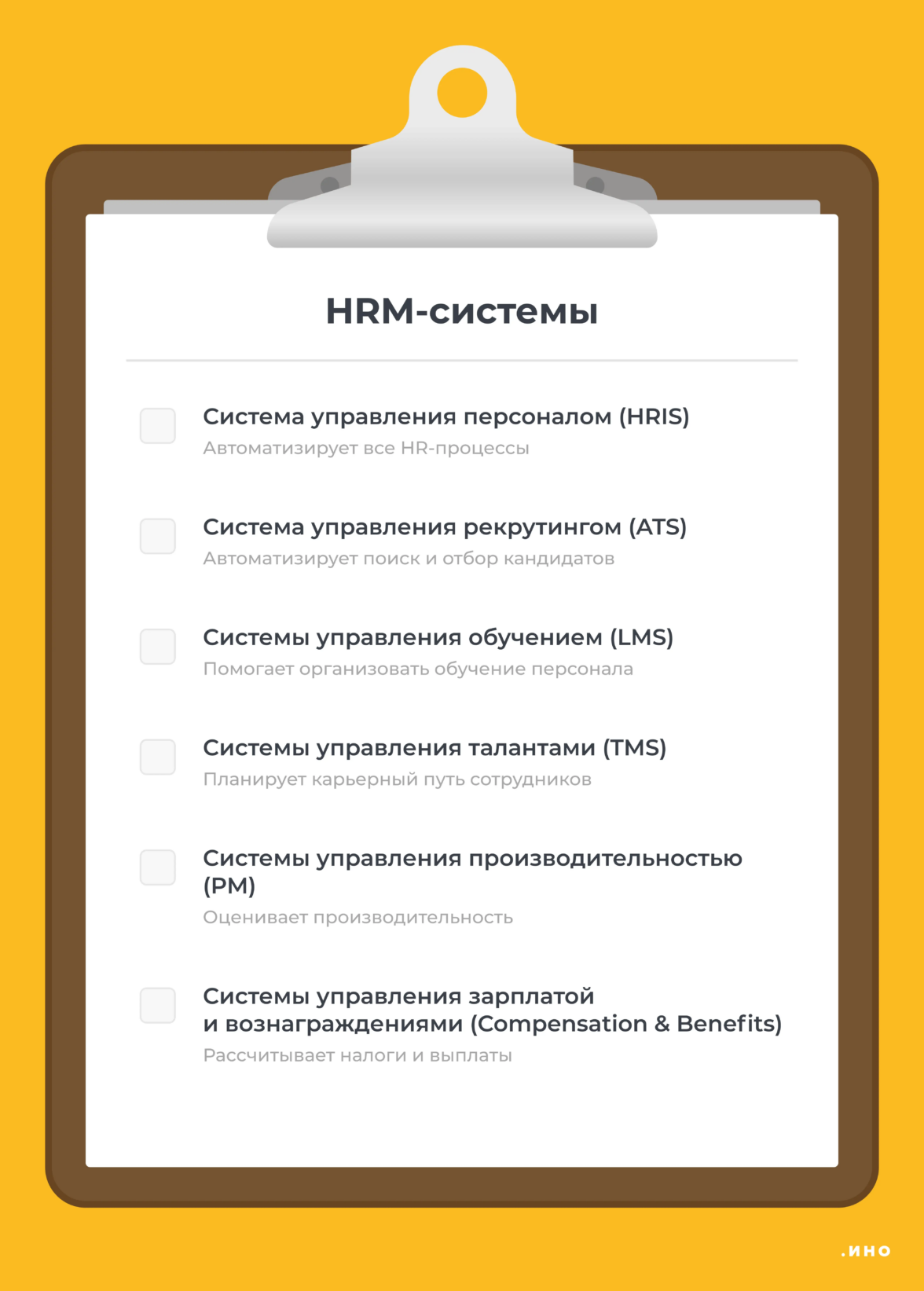 HRM-система (Human Resource Management, или «управление человеческим ресурсом») — инструмент, который помогает компании управлять сотрудниками. Такая платформа берёт на себя стандартные процессы отдела по работе с персоналом и помогает оптимизировать его работу. По сути, если CRM — это инструмент для выстраивания отношений с клиентами компании, то HRM — это CRM-система для HR.