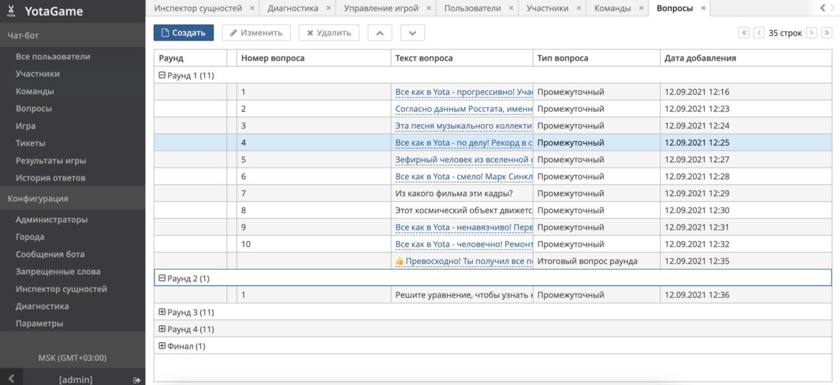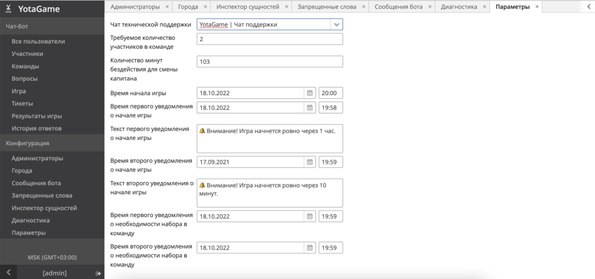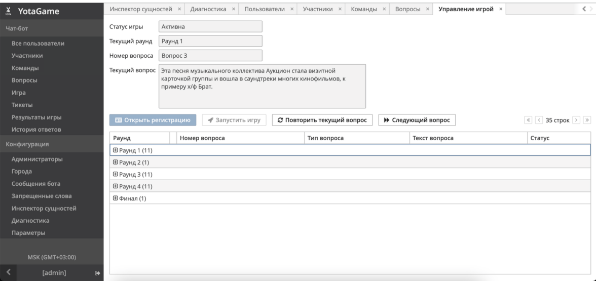 Можно ли было обойтись без админки и все управление вести в боте? Скорее нет, чем да. В игре требовалось динамичность не только от игроков, но и от модераторов. А управлять списковыми таблицами в интерфейсе чат-бота — такое себе.