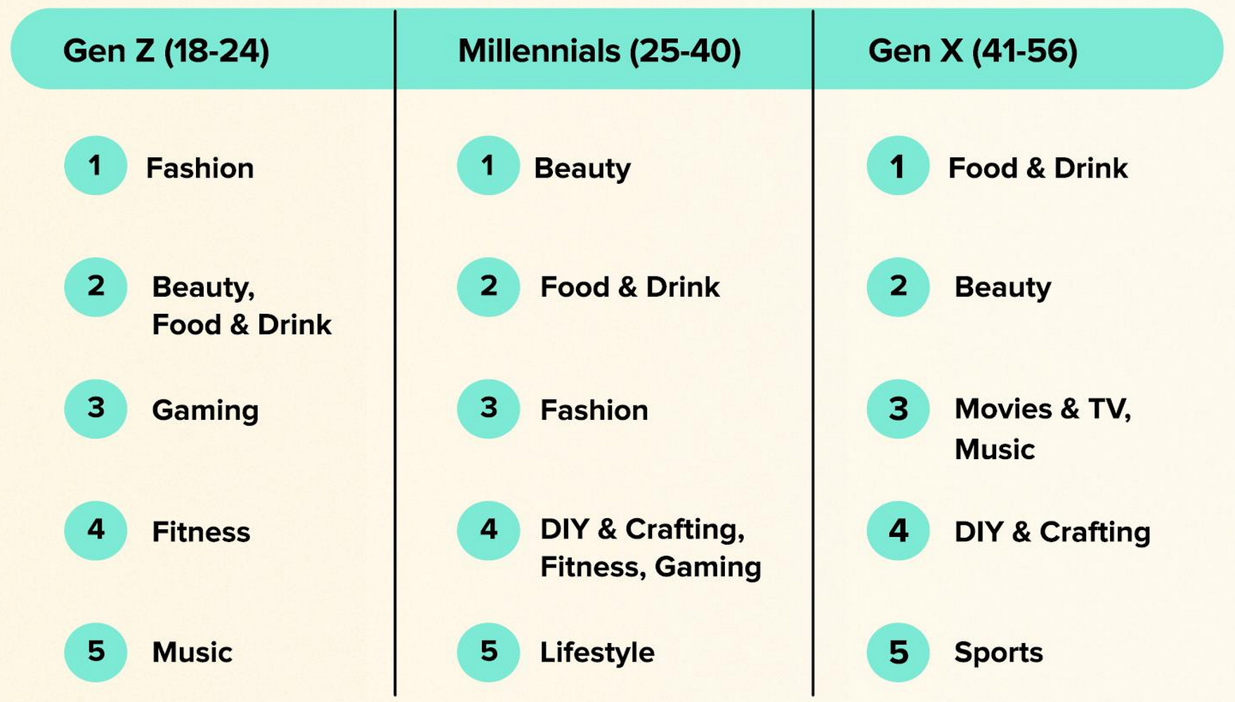 Больше всего пользователей соцсетей нравятся посты о еде и напитках, красоте и моде. При этом предпочтения людей ожидаемо отличаются в зависимости от возраста и пола. Так, у зумеров наибольшей популярностью пользуются сообщения об индустрии моды, у миллениалов – о красоте, а у поколения X – про еду и напитки.