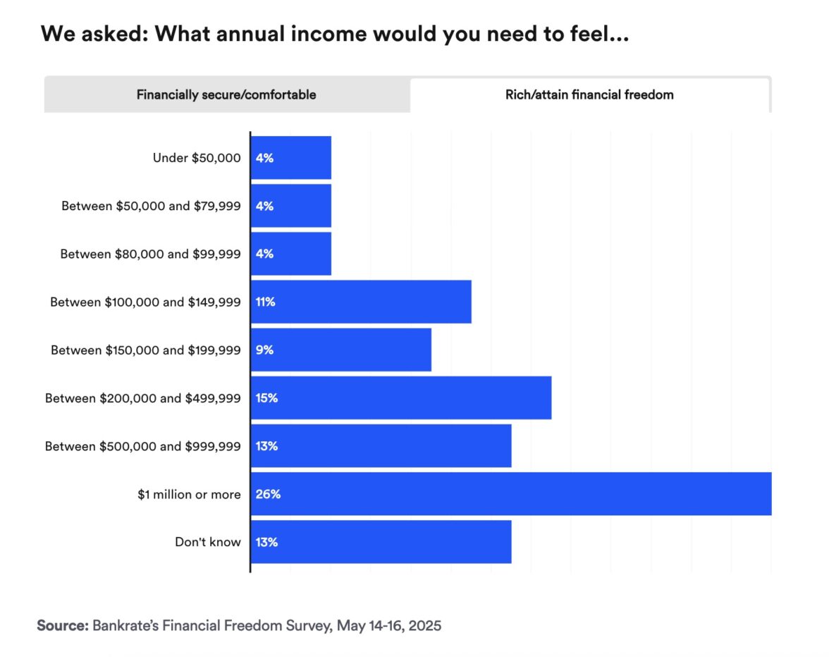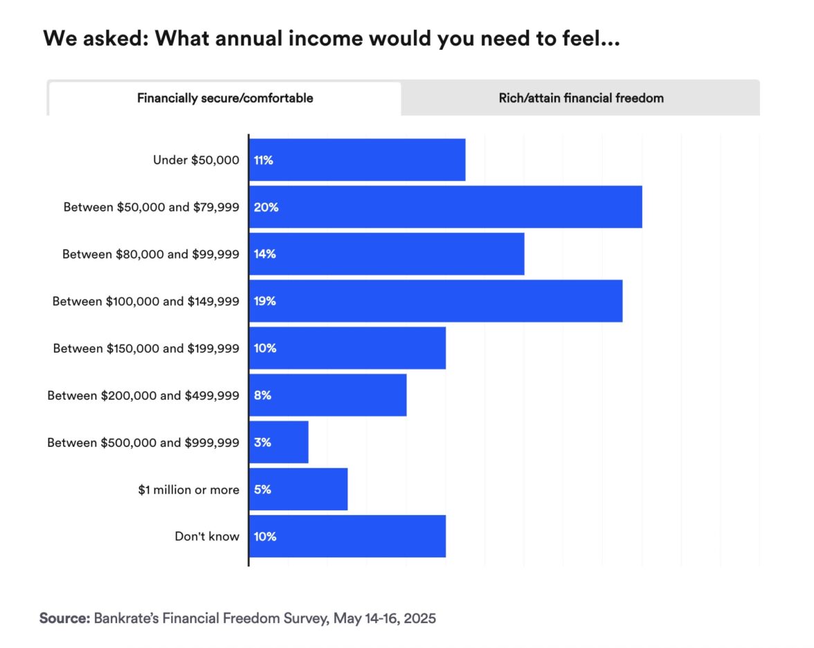 Какой годовой доход американцы считают достаточным, чтобы чувствовать себя защищенными в финансовом плане.