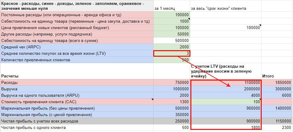 2. LTV важно учитывать и в расчете стоимости привлечения клиента. Особенно в случае когда LTV >> ARPC. Стоимость привлечения клиента в первую покупку должна окупаться выручкой за все время жизни.