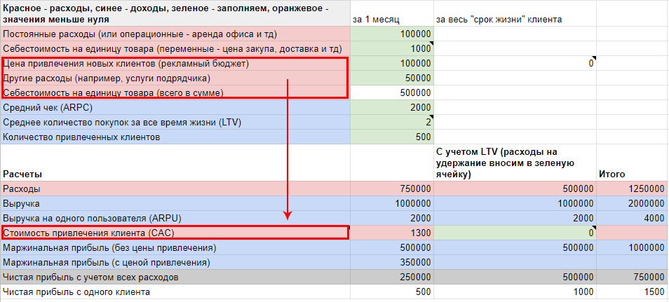 Мы считаем, что в стоимость клиента не стоит вносить постоянные расходы, так как они не завязаны на количестве проданных товаров или услуг.