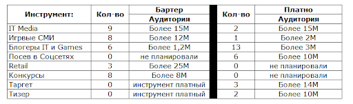 Так выглядел план продвижения на 2,5 месяца. Прогнозируемые охваты в сумме были в районе 30М.