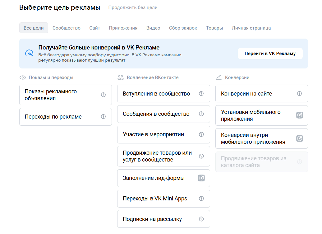 Объявления, которые показываются только пользователям, соответствующим заданным параметрам: по возрасту, полу, местоположению, интересам и др. Запустить такую рекламу легко: достаточно зайти в рекламный кабинет VK, выбрать цель (например, переходы на сайт), задать параметры аудитории, формат и бюджет.