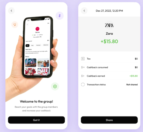 Примером проекта среднего уровня может служить кэшбэк-сервис для друзей. Команда обновила интерфейс уже существующего приложения, чтобы повысить конверсии и доверие пользователей. После UX/UI-аудита дизайн стал современным и лаконичным, в нём соединились элементы соцсети и финтеха. Работа заняла около месяца. Стоимость подобных проектов обычно составляет $8–15 тыс.