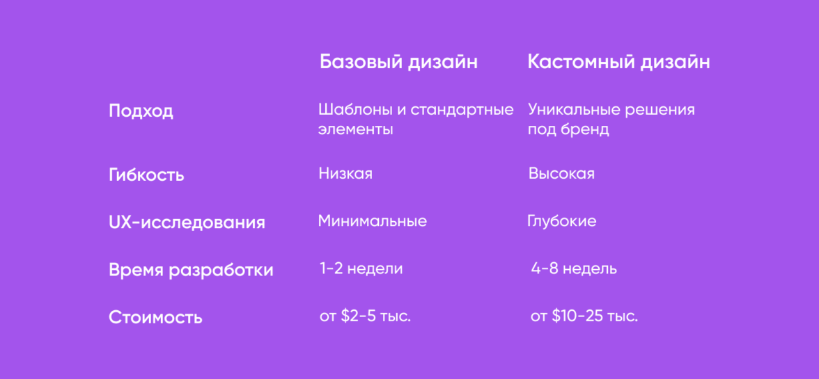Разница в стоимости между базовым и кастомным UX/UI-дизайном