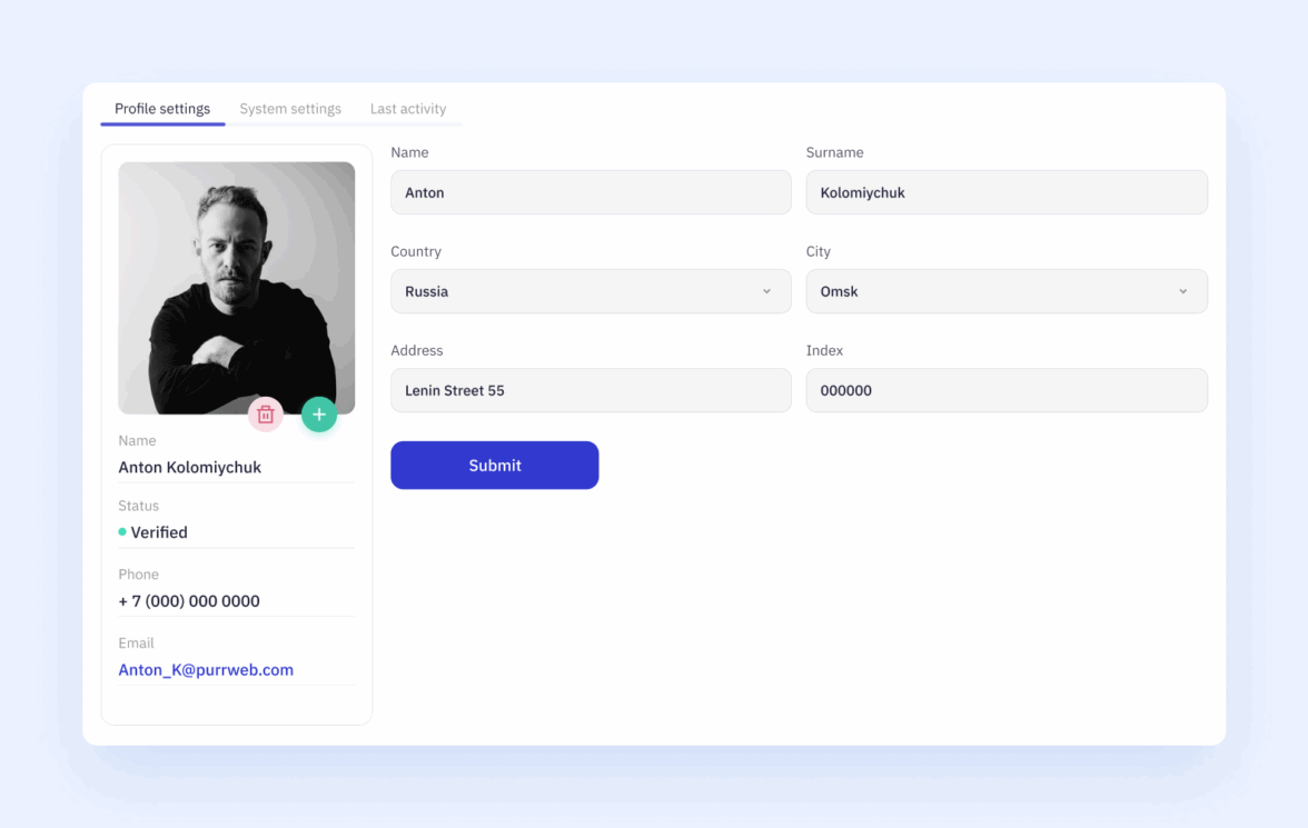 Интерфейс настроек профиля для проекта E-Wallet