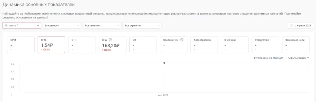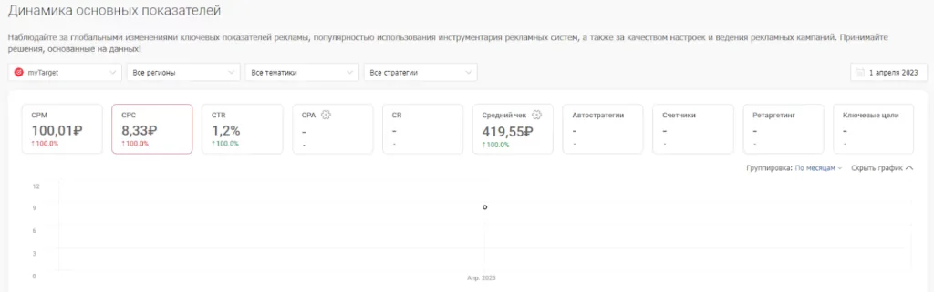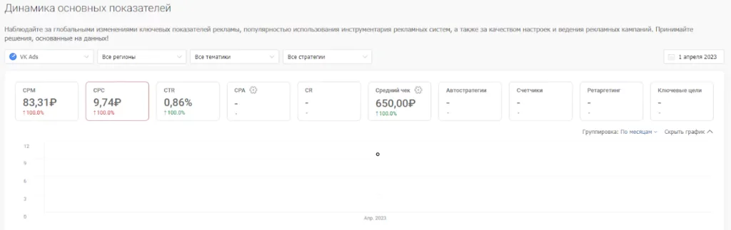 Теперь обратим внимание на динамику изменения CPC. В апреле 2023 года CPC составил 8,33 ₽.