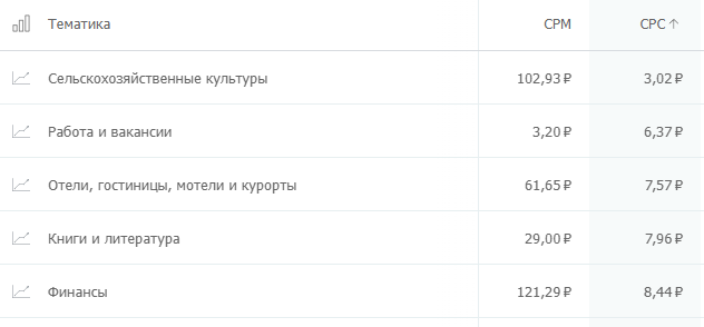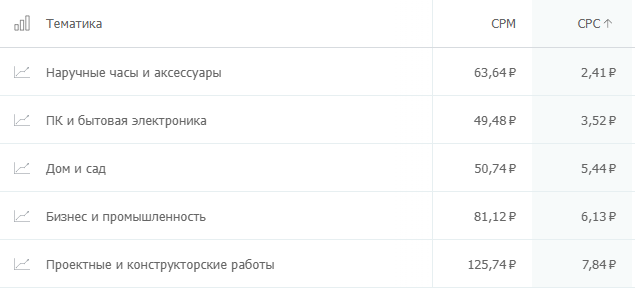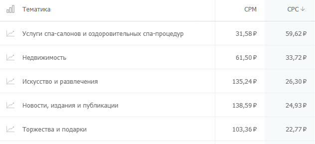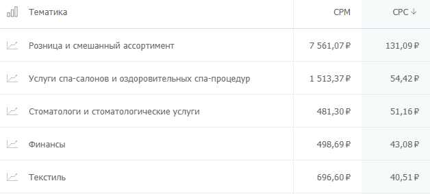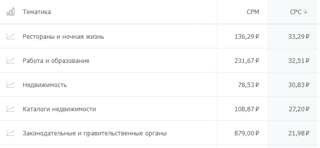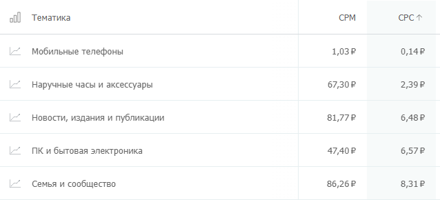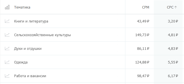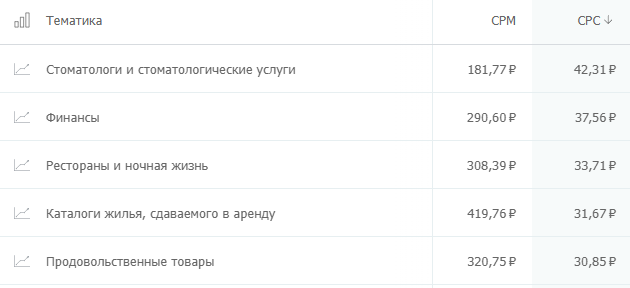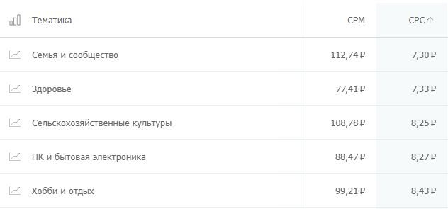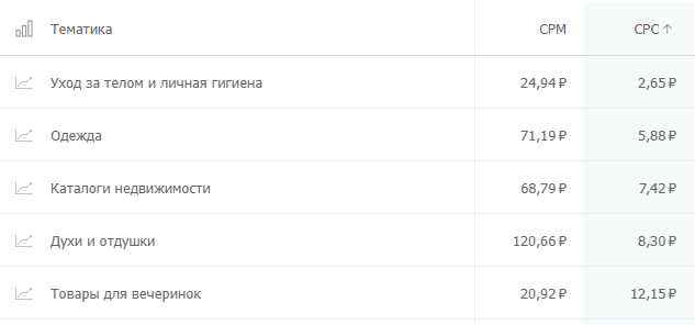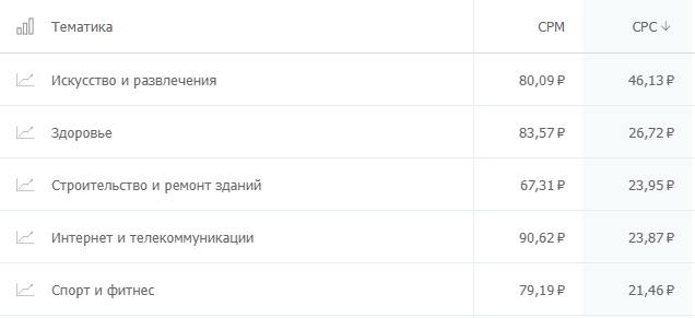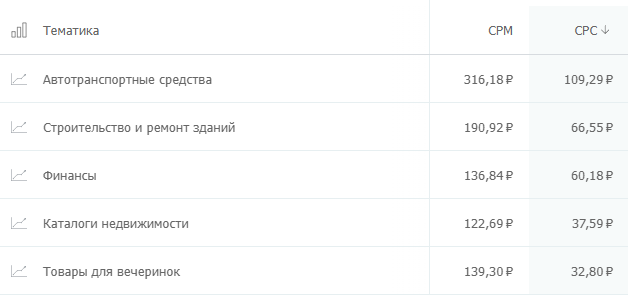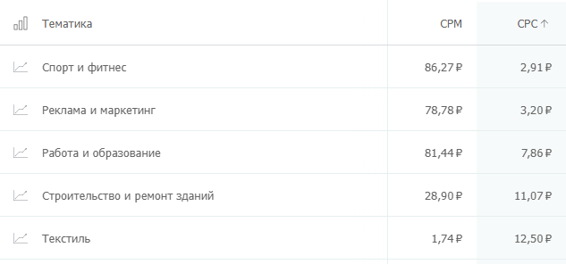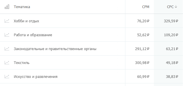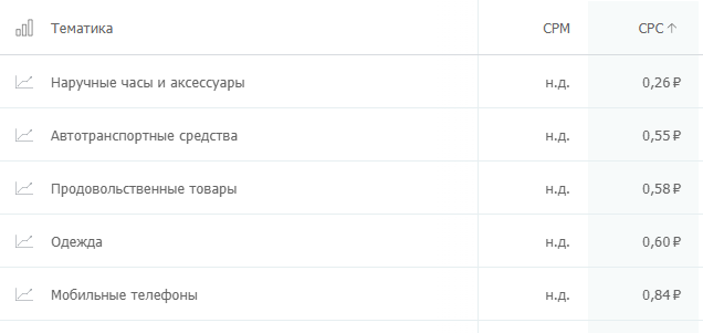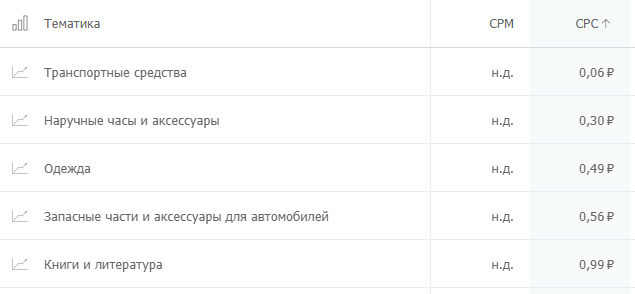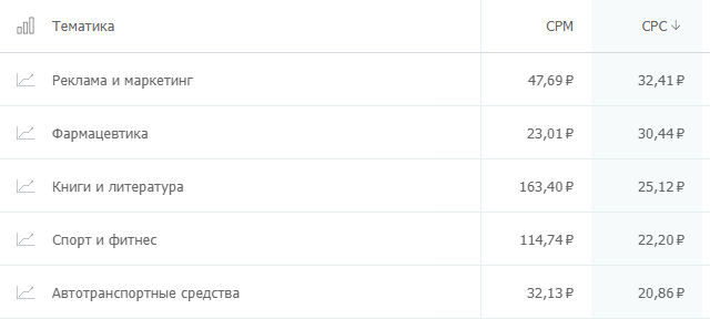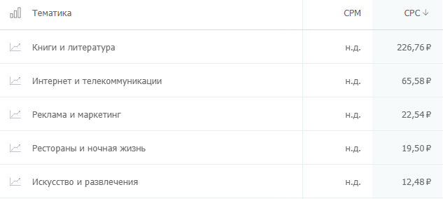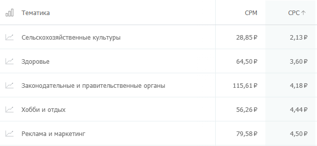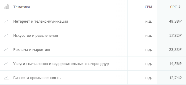А все клики из топ-5 самых дешевых тематик стоят меньше 1 рубля. Обратите внимание, что здесь представлены довольно популярные ниши.