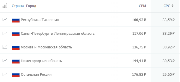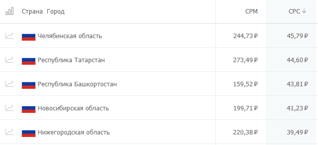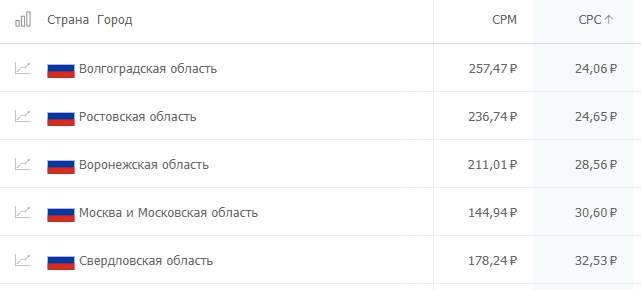 Примечательно, что среди самых выгодных показателей CPC нет Волгоградской области, которую мы отмечали выше.