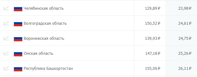 Регионы с условно дешевым продвижением расположились в таком порядке: