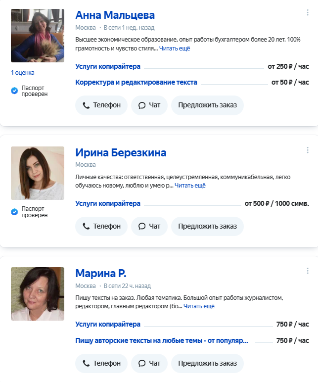 Это небольшая статья-инструкция, она вполне может украсить блог по маркетингу. Обратите внимание на звезды — заказчик может выбрать специалиста с высоким трехзвездочным уровнем.