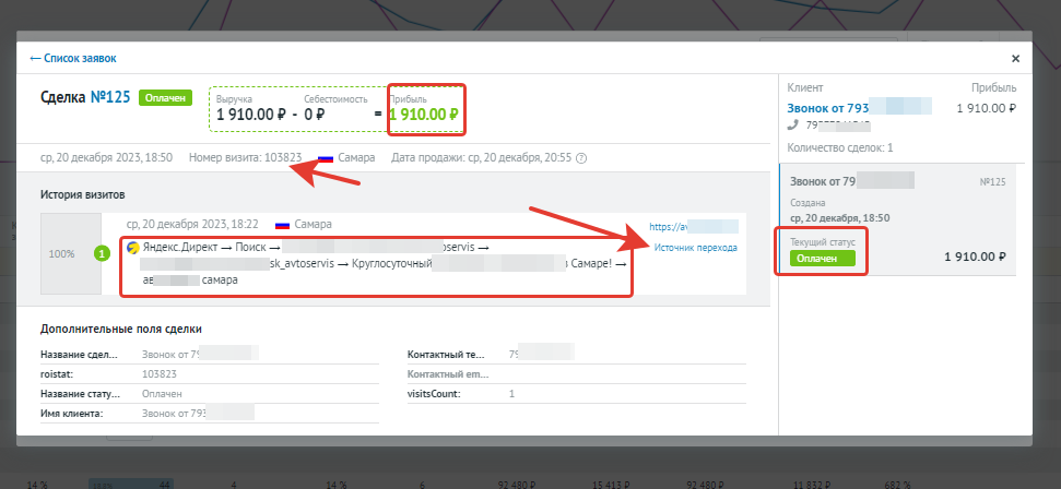 Roistat, который присваивает посетителю уникальный номер визита. К этому номеру