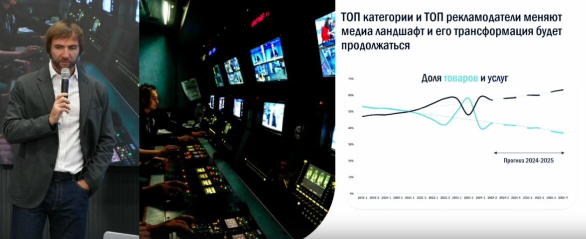 В новой телевизионной реальности, о приходе которой заявил Василий Туровец на конференции, доля ко-промо в первой половине 2024 года составила 30%, доля топ-20 рекламодателей — 40%, а доля финансов, фармы и ритейла среди всех рекламодателей — 43%.