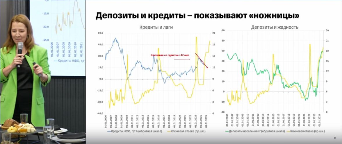 Депозиты и кредиты показывают ножницы. «Льготная ипотека сворачивается, но люди продолжают активно брать кредиты, потребители всегда реагируют на повышение ставки Центробанка не сразу», — сообщила Софья Донец.