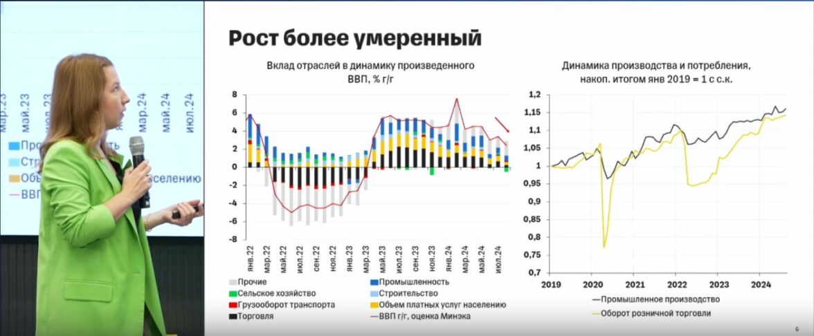 В целом по году рост ВВП составит около 4%, прогнозирует Т-Банк. «ВВП никогда так не рос за последние 15 лет за исключением периодов восстановительного роста после пандемии коронавируса, однако после августа вклад отраслей в ВВП идет на спад», — рассказала эксперт. Она также отметила, что темп роста спроса в ритейле сейчас составляет около 5% с начала года, в следующем году он стабилизируется на уровне 2-3%.