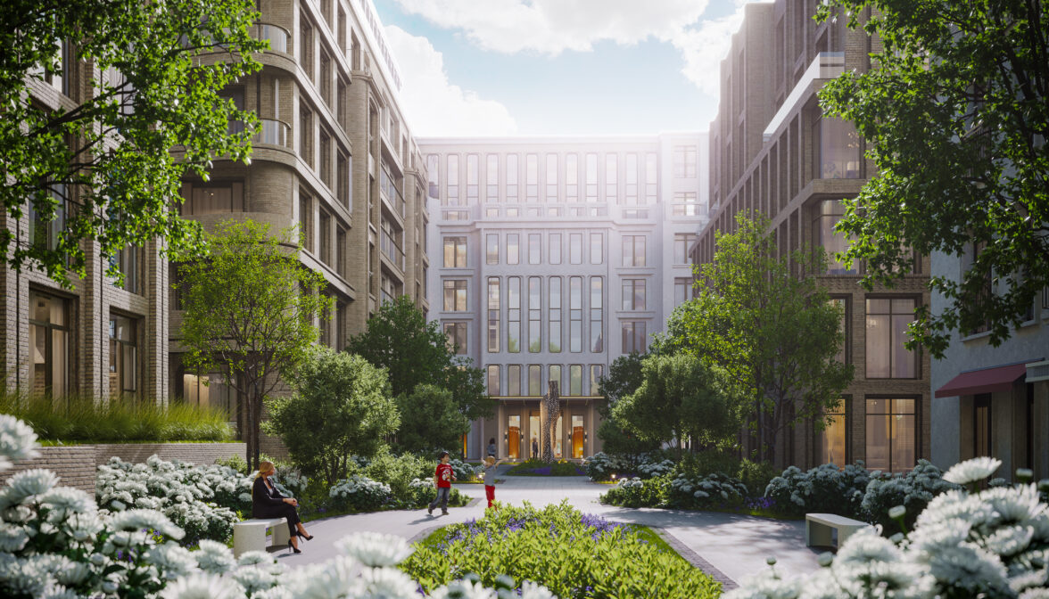 Проект делится на 3 сущности: 2 жилые застройки и гастрономический дворик. Мы нашли ключевой смысл проекта в том, что он может работать на гранях нового и старого, стилей, традиций и новых технологий. Для жилого массива родилась концепция «Дом озарения». Она стремится вдохновлять жильцов на созидание, обращая их внимание на архитектурные решения, комфорт инфраструктуры и смысловую насыщенность. Все грани бренда отражают премиальность и знаковость, делая его культовым объектом города.