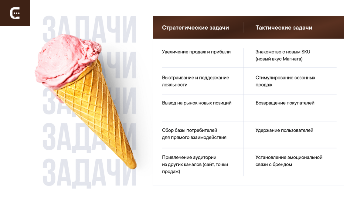 задачи — стимулирование продаж, сбор базы клиентов, знакомство с SKU;