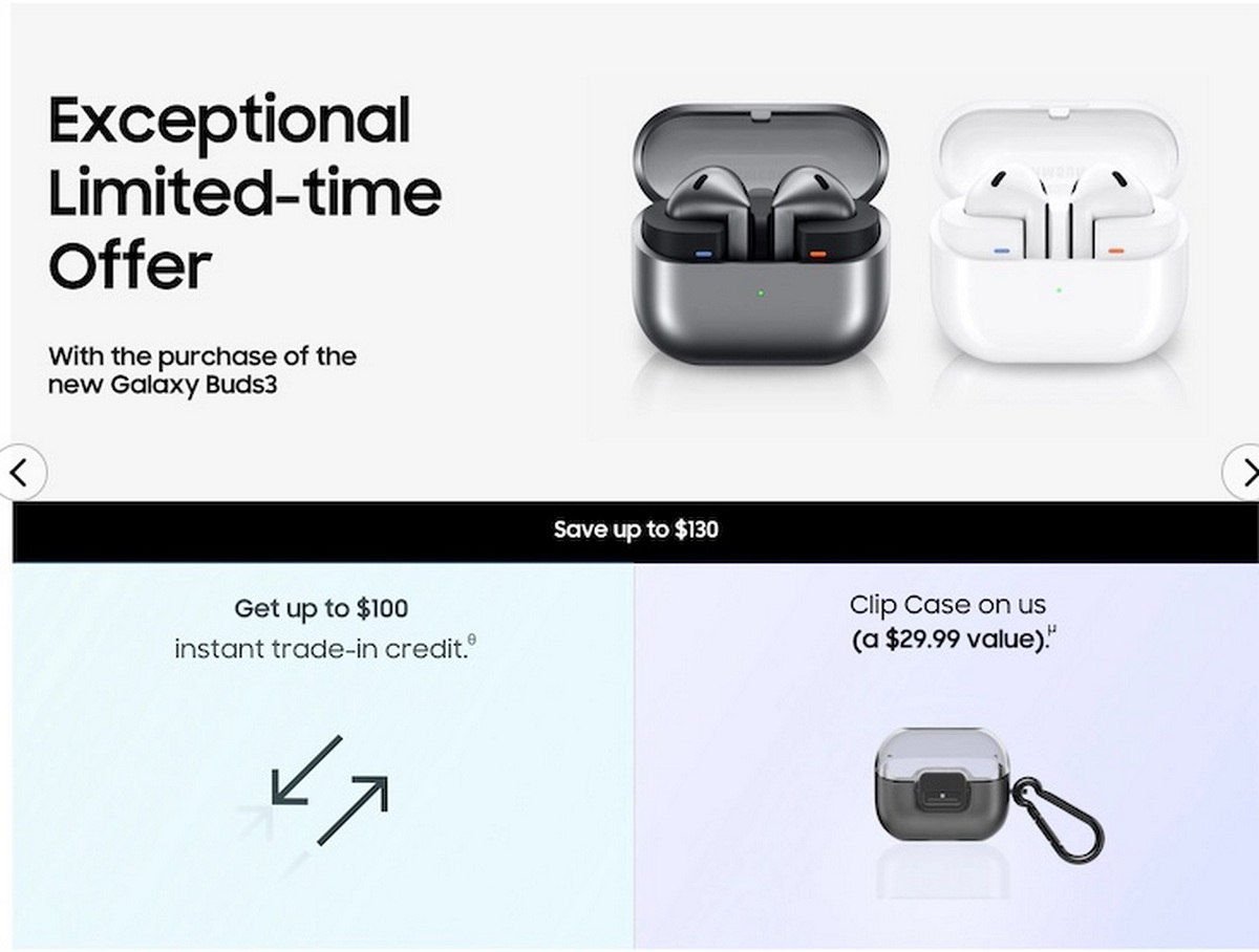 Базовая версия беспроводных наушников нового поколения стоит $179,99, премиальная – $249,99. Сделавшим предзаказ компания Samsung бесплатно добавляет зарядный футляр. Первым заказчикам также предлагается трейд-ин – на продукцию как Samsung, так и Apple.