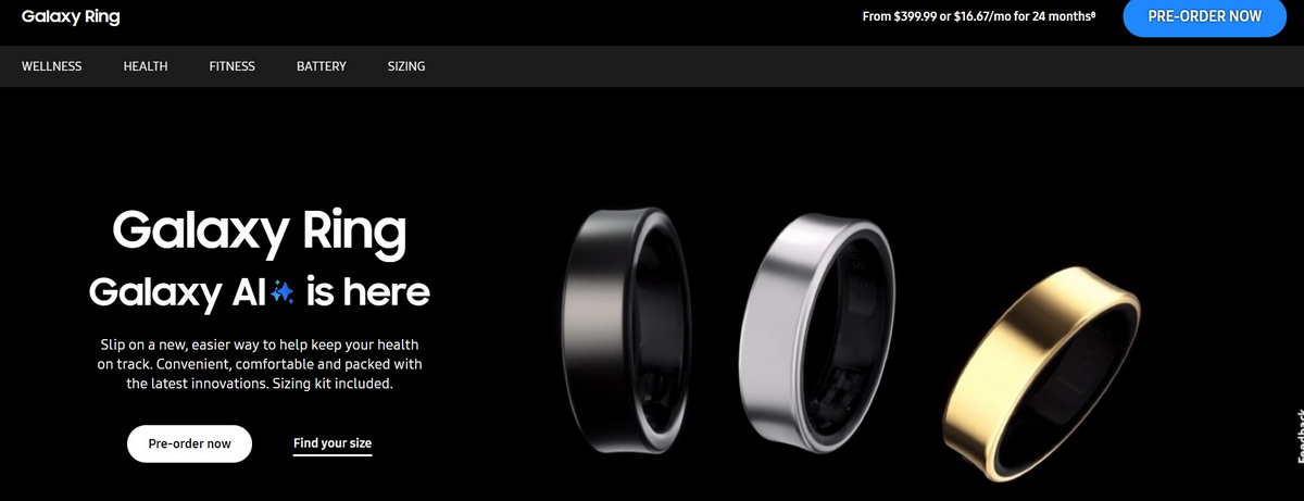 Galaxy Ring, как и все остальные продукты, представленные на Galaxy Unpacked, станут доступны покупателям с 24 июля.