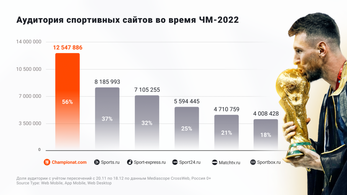 СМИ Rambler&Co «Чемпионат» стал самым посещаемым спортивным сайтом в дни ЧМ-2022