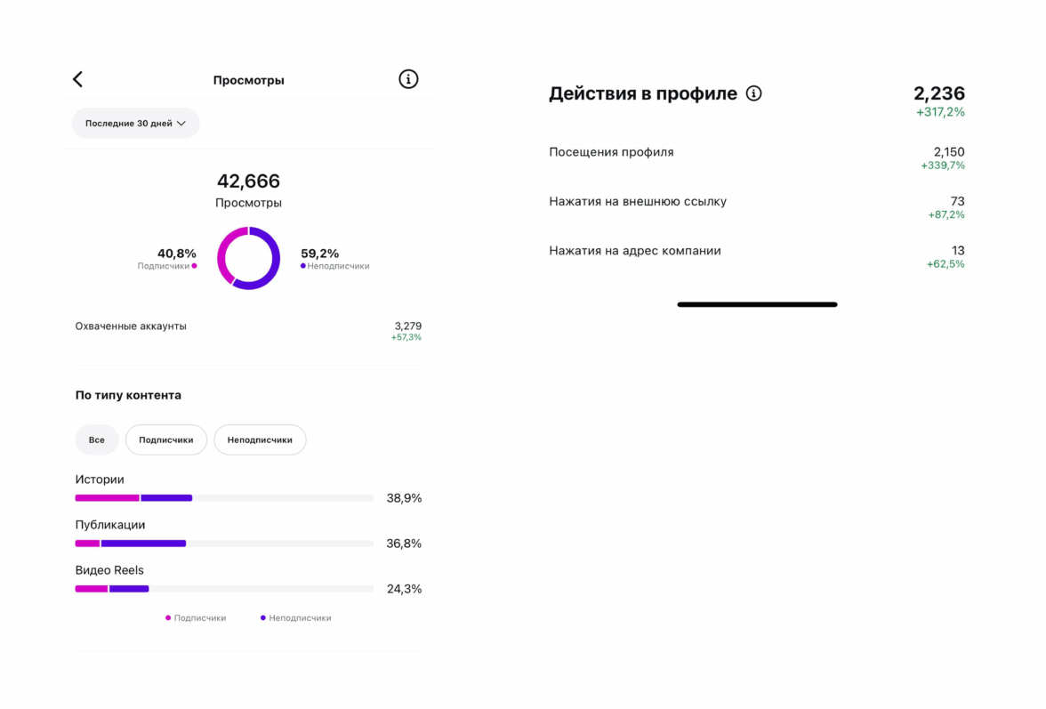 Итог: Reels начали собирать просмотров в 2–3 раза больше, чем раньше, и стали якорем вовлеченности.
