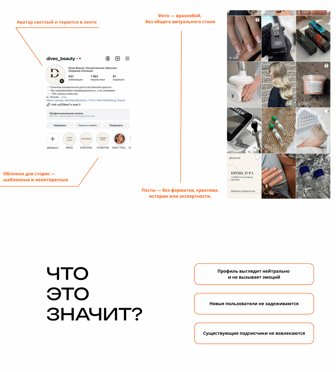 На фоне бурной конкуренции в бьюти-сфере это был красочный «антипример»: работы мастеров — отличные, но упаковка аккаунта не вызывала желания остаться, подписаться и, главное, записаться.