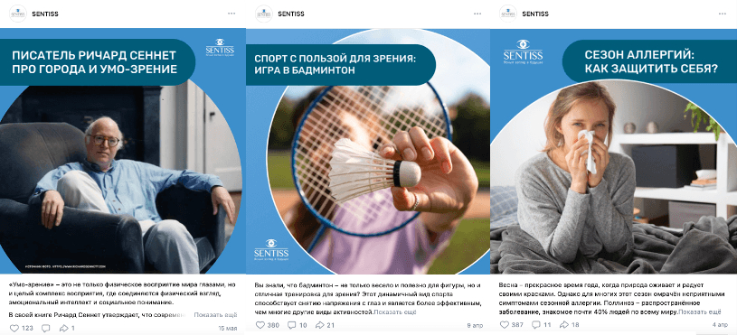 Для начала мы актуализировали рубрикатор: освещение новостей компании, отзывы на продукты, игры для тренировки зрения, поздравления не только с российскими праздниками, но и с индийскими, чтобы не забывать о корнях компании, а также знакомство с командой, интересные факты о зрении и другие вовлекающие форматы.