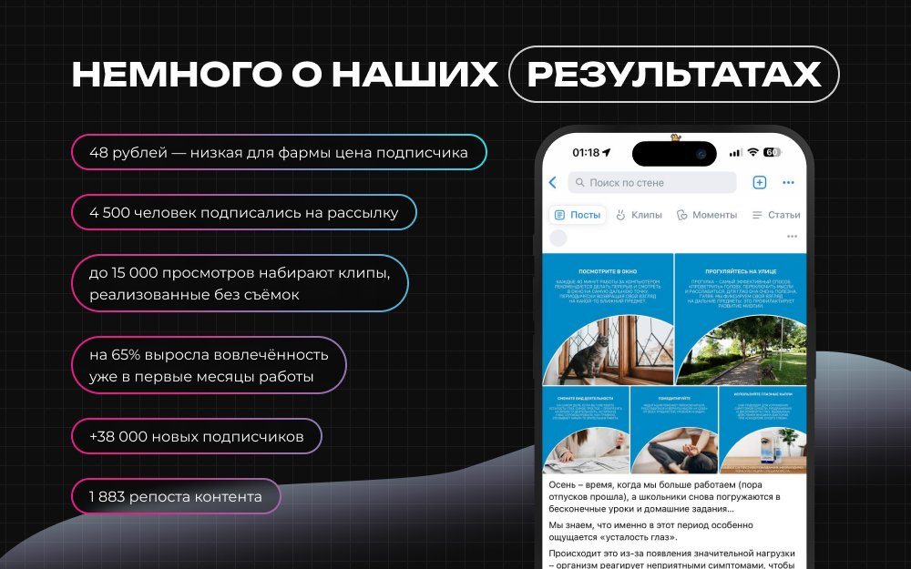 Наша работа началась в ноябре 2022 года, основной целью стало увеличение аудитории на площадке ВКонтакте — клиент поставил задачу достичь отметки в 1 500 подписчиков к марту 2023 года. Представляете, насколько переигран KPI при таких изначально скромных целях?