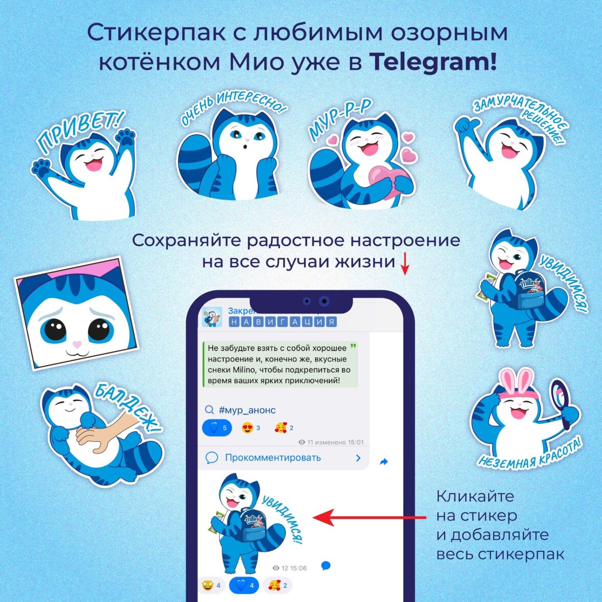 Второй шаг стратегии – интегрировать Мио в реальную жизнь подписчиков и обеспечить их регулярное взаимодействие. Мы разработали брендированные стикеры с узнаваемыми уникальными фразами озорного котёнка, которые пользователи могут использовать в мессенджерах, а значит, дополнительно продвигать бренд, делая кота и снеки Milino частью своих диалогов с близкими. А также внедрили конкурсы, где регулярно разыгрываем брендированный мерч с изображениями кота, который служит напоминанием о бренде в повседневной жизни: игрушки, канцелярия, одежда, аксессуары и даже настольные игры.