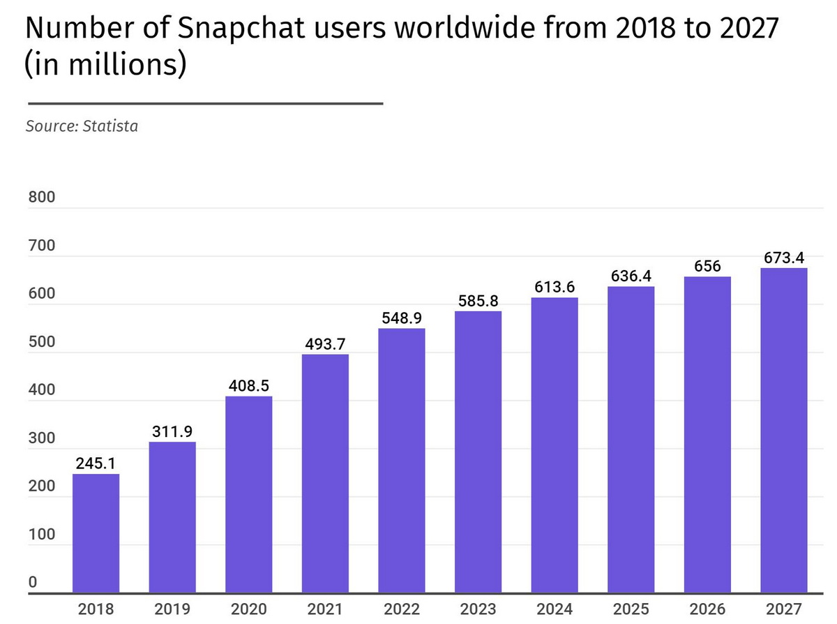 За последние пять лет более 300 млн человек начали использовать Snapchat для обмена фотографиями и видео. Приложение остается самой популярной социальной сетью среди подростков, особенно в США, где почти 60% интернет-пользователей в возрасте от 13 до 24 лет используют его ежедневно.
