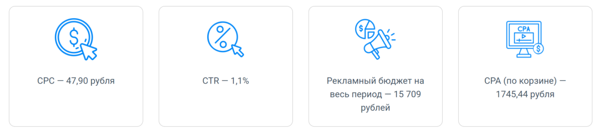 Точное понимание того, что для определенного заказчика работает эффективно, а что нет, дает хорошие результаты. Мы не пожалели усилий на исследование и тестирование, и это окупилось впоследствии. Разница в CPC и CPA по корзине в наших кампаниях говорит сама за себя.