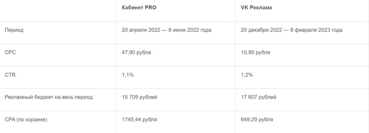 Сравним результаты весенней кампании в кабинете PRO и зимней в VK Рекламе.