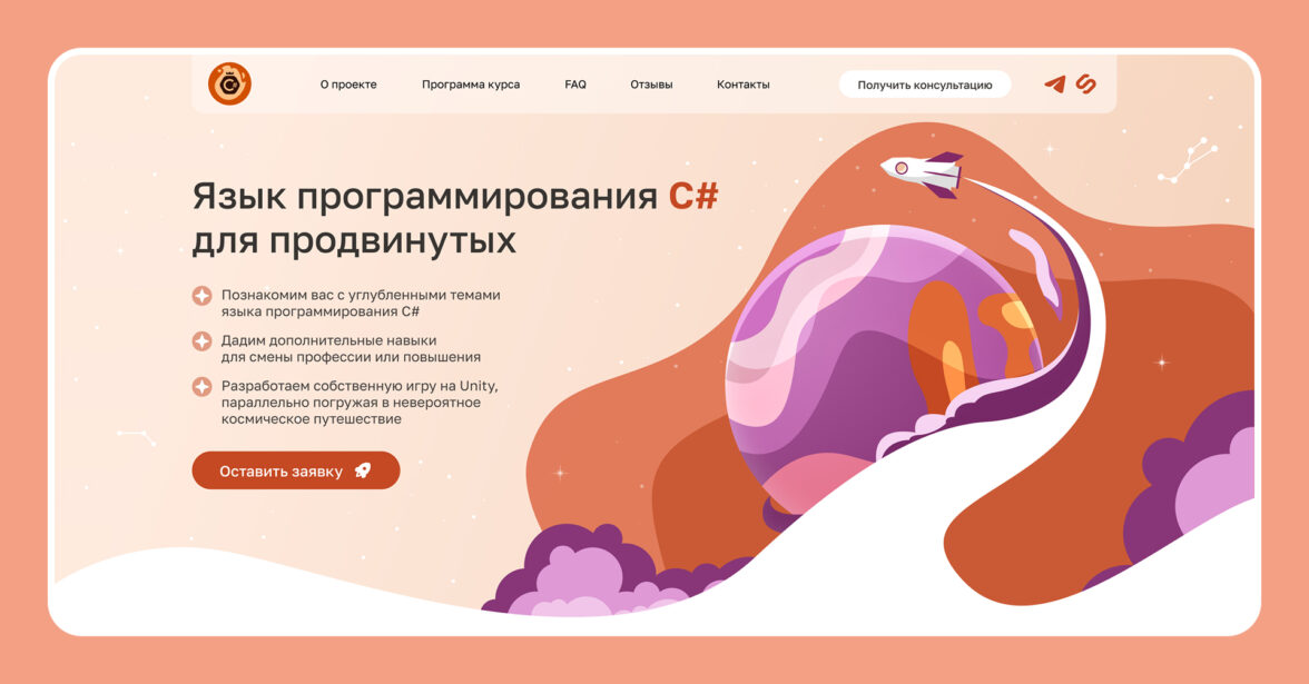 У курса по программированию не было сайта. Продавали на Stepik и через группу в ВК, но хотели масштабироваться. За 1.5 месяца собрали лендинг в космической комикс-стилистике с авторскими иллюстрациями и усилили преимущества курса. В этом кейсе – разбор дизайн- и UX-решений, которые помогли грамотно упаковать инфопродукт и не перегрузить посадочную на Tilda.
