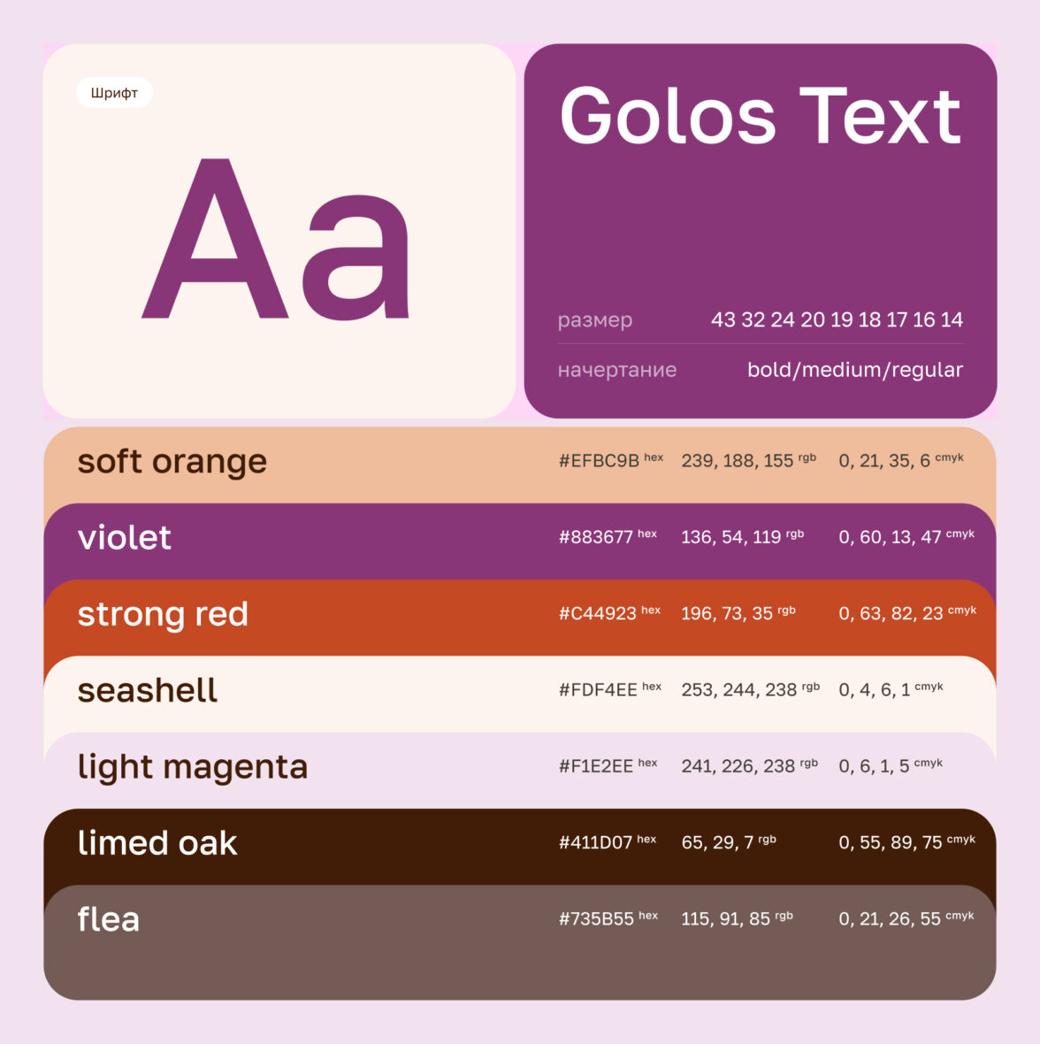 Используемые цвета и шрифт