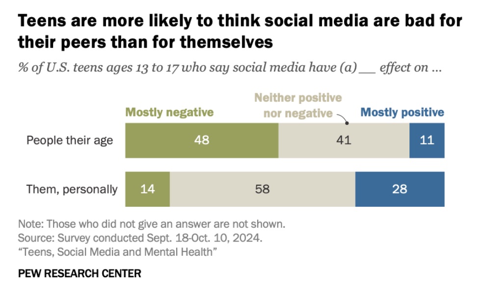 Подростки считают, что соцсети вреднее для их сверстников, чем для них самих