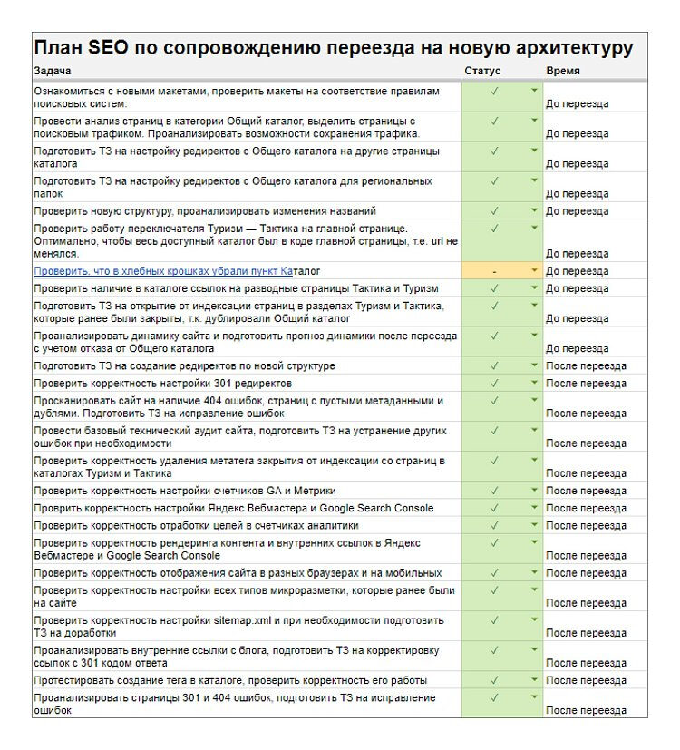 Мы регулярно проводили встречи со всеми командами, чтобы они были в фокусе. Каждую неделю встречались с командой «Сплава» и командой разработчиков. В результате слаженной работы всех команд нам удалось сопроводить изменения на сайте без потерь трафика.