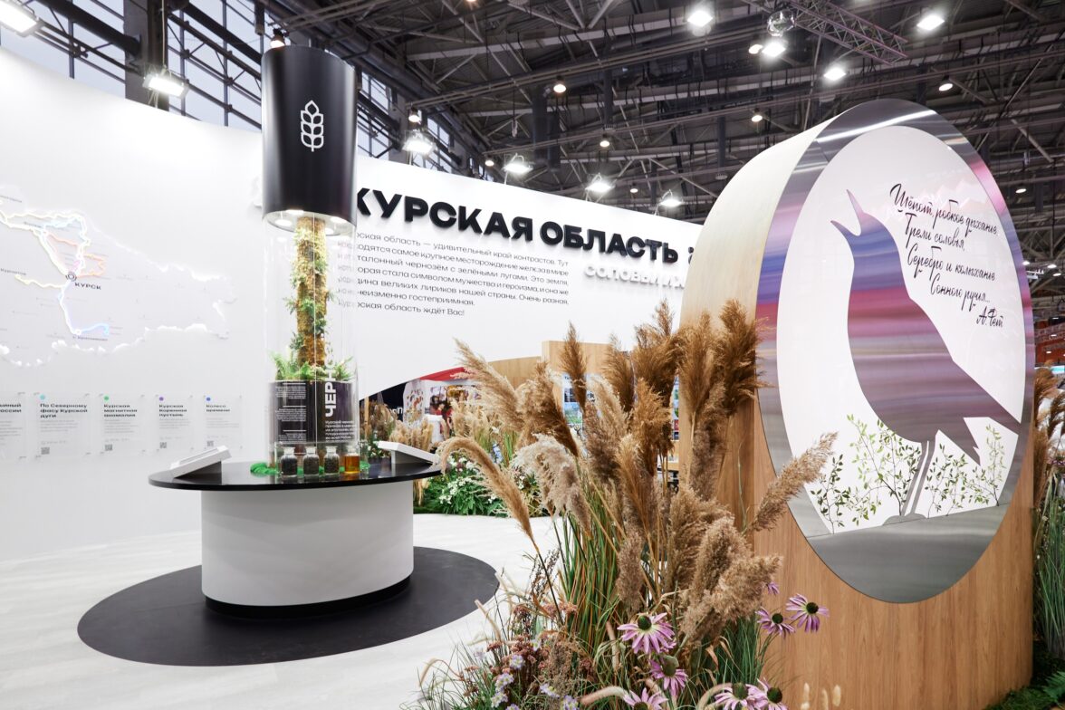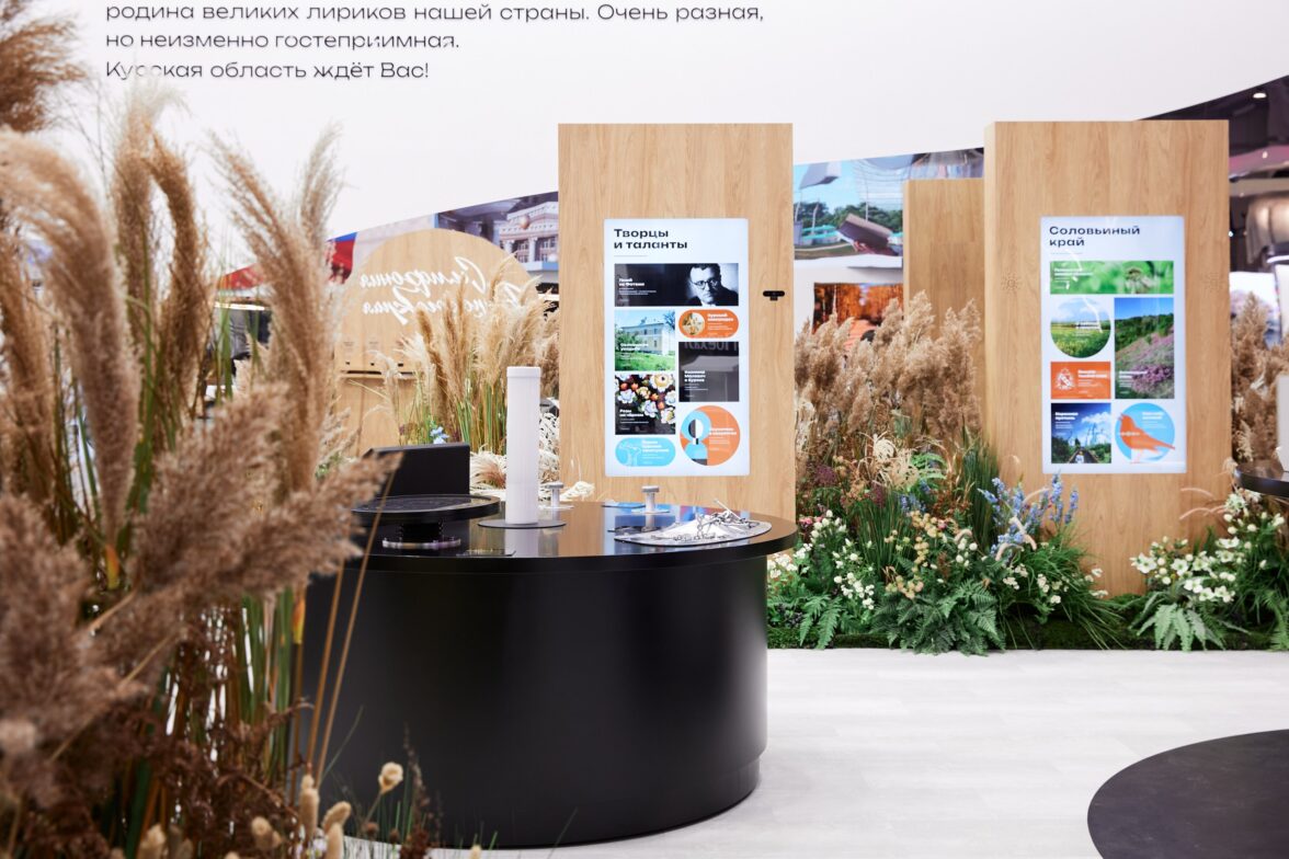 Стенд Курской области был трендсеттером на выставке. Например, идею с ароматами, одну из самых популярных активностей стенда, постепенно интегрировали и другие регионы. Отличительной фишкой стенда было внимание к деталям. Ненавязчивые ароматы разнотравья, трели соловьев, сухоцветы и искусственные, ботанически достоверно исполненные цветы и травы, — все это создавало яркий сенсорный опыт для посетителей стенда, который погружал их всецело в атмосферу региона.
