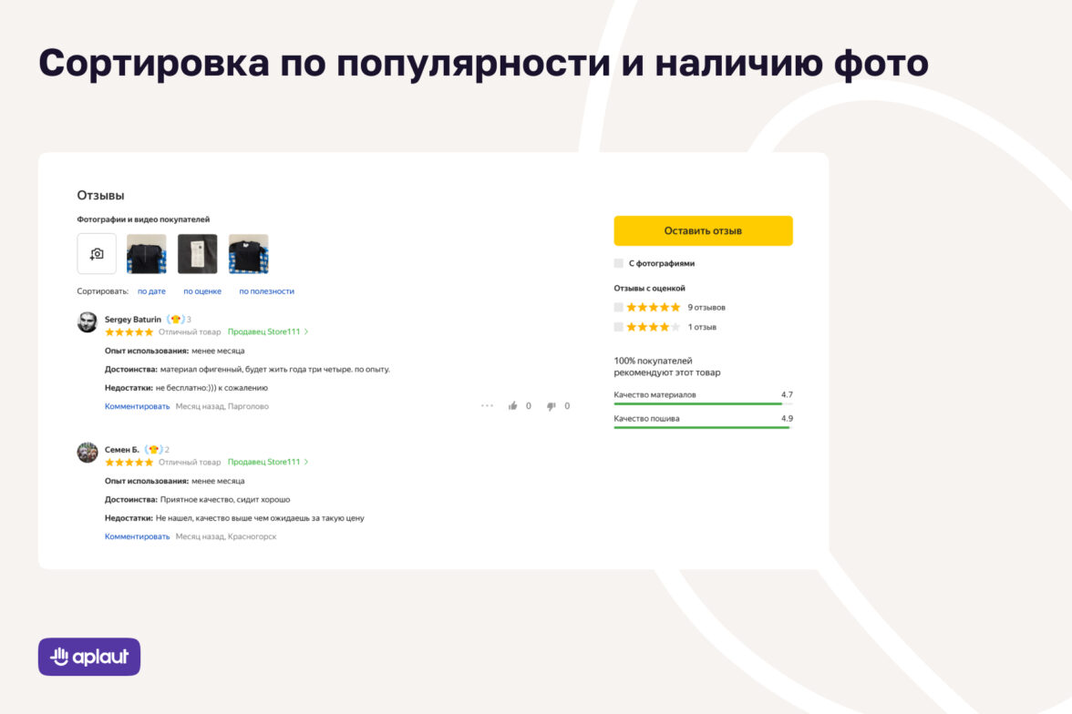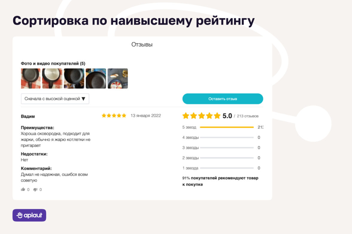 Размещать отзывы на видном месте. Убедитесь, что отзывы клиентов видны на страницах и в карточках товаров. Их легко найти и прочесть, никакая сторонняя реклама или неудобный дизайн не мешают пользователю знакомиться с отзывами.